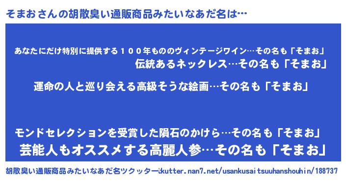 | ヒーロー風カッコイイあだ名 | 『ウルトラそまおマン』『仮面ソマダー』 |