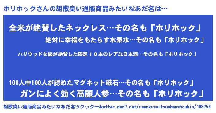 | 意味不明あだ名 | 『住所不定無職ホリホック(50歳)』 |