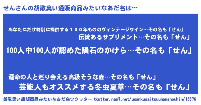 | ポケモン風あだ名 | 『セックウザ』『セーンイ』『ヒセン』 |
