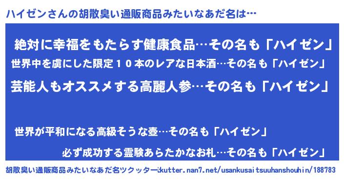 | 意味不明あだ名 | 『自称ハイゼン』『永久保存ハイゼン』 |
