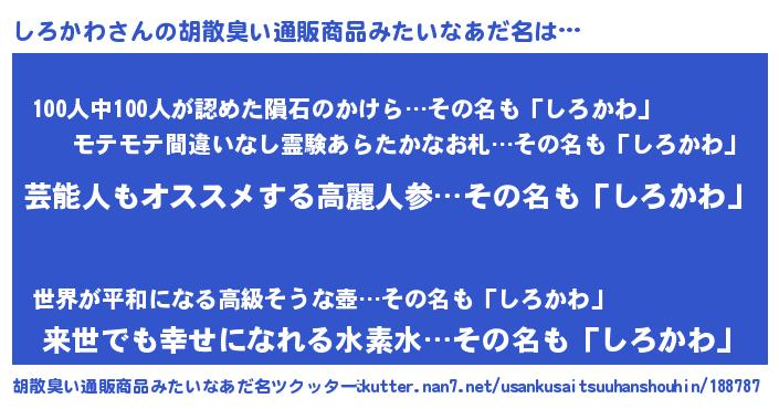 | ヘコむあだ名 | 『しろかわ(笑)』『しろっふぃ~』 |