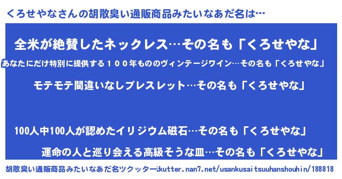 | 肩書あだ名 | 『くろせやな社長』『くろせやな班長』 |