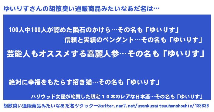 | 欧米人風あだ名 | 『ケンブリッジゆいりす』 |