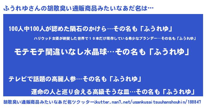 | 意味不明あだ名 | 『ペロリンふうれゆ』『自称ふうれゆ』 |