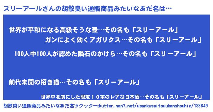 | ヒーロー風カッコイイあだ名 | 『正義の使者スリーアール』 |