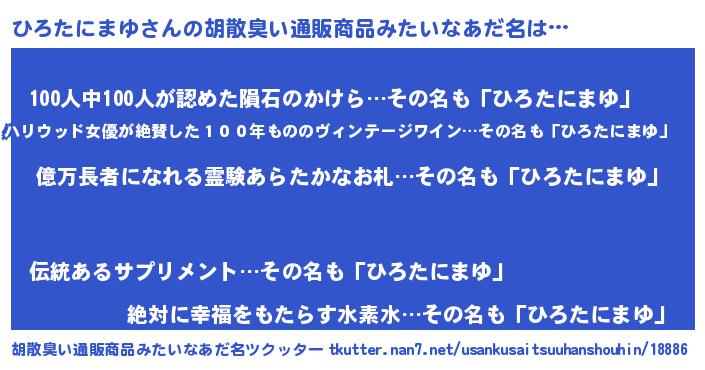 | ヘコむあだ名 | 『ひろっふぃ~』『ひろたにまゆ(遠い目)』 |