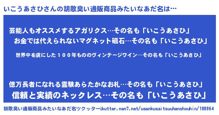 | 意味不明あだ名 | 『住所不定無職いこうあさひ(5歳)』 |