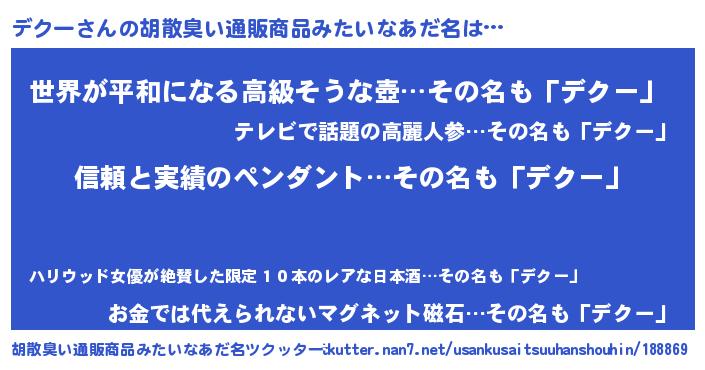 | 意味不明あだ名 | 『とにかく怪しいデクー』『自称デクー』 |