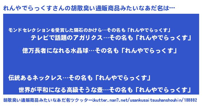 | 意味不明あだ名 | 『ヨモギ科れんやでらっくす属』 |