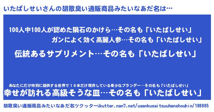 | 男性向けラノベタイトル風あだ名 | 『いたばしせいの嫁は女の子じゃないと思った?』 |