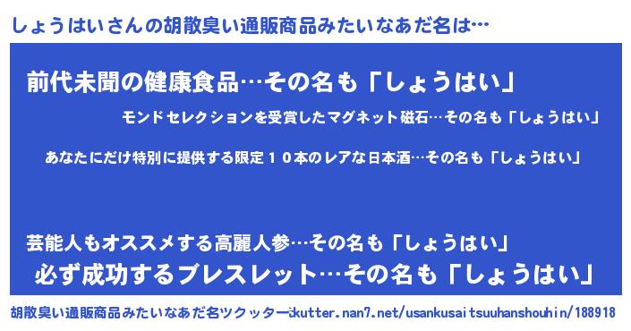 | 意味不明あだ名 | 『住所不定無職しょうはい(41歳)』 |