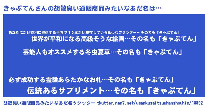 | 意味不明あだ名 | 『自称きゃぷてん』 |