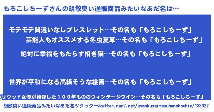 | ヘコむあだ名 | 『もろこしちーず(小並感)』『もろふぇ~』 |