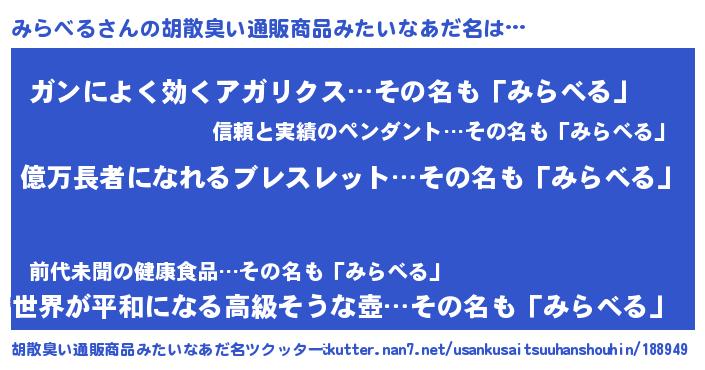 | 意味不明あだ名 | 『ペロリンみらべる』『自称みらべる』 |