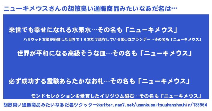 | 意味不明あだ名 | 『ニューキメウスフォーエバー』 |