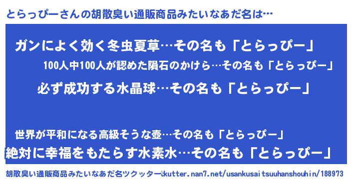 | 意味不明あだ名 | 『ペロリンとらっぴー』『自称とらっぴー』 |