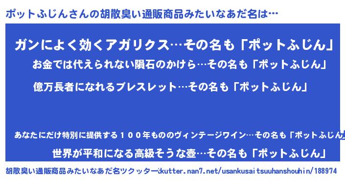 | ヒーロー風カッコイイあだ名 | 『スーパーポットフジン』『仮面ポッダー』 |