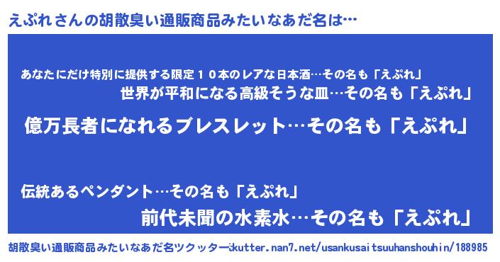 | 意味不明あだ名 | 『ペロリンえぷれ』『永久保存えぷれ』 |