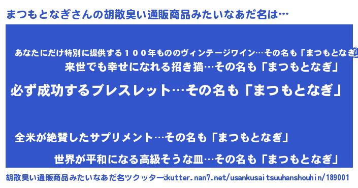 | ヘコむあだ名 | 『まつふぇ~』『なまこ酢』 |