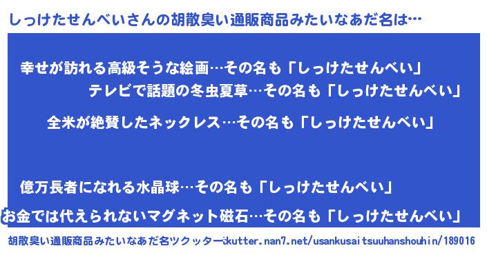 | 意味不明あだ名 | 『とにかく怪しいしっけたせんべい』 |
