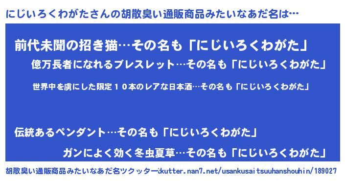 | ヒーロー風カッコイイあだ名 | 『仮面ニジダー』『ネオニジイロクワガタ』 |