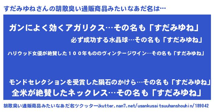 | 意味不明あだ名 | 『住所不定無職すだみゆね(6歳)』 |