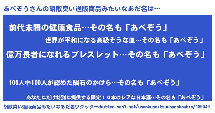 | ヘコむあだ名 | 『あべにー』『あべぞう(爆)』 |