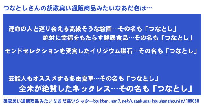 | 伝説のあだ名 | 『救世主となる占い師つなとし』 |