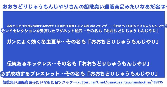| 恥ずかしいあだ名 | 『オオチドリジュウモンジヤリデラックス』 |