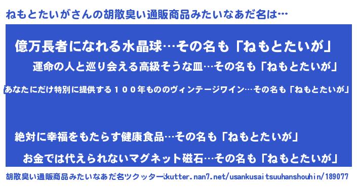 | 欧米人風あだ名 | 『ダレノガレねもとたいが』 |