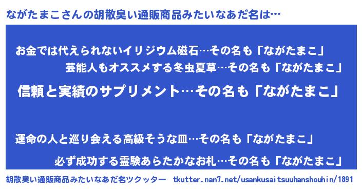 | 意味不明あだ名 | 『とにかく怪しいながたまこ』 |