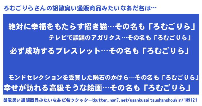 | 意味不明あだ名 | 『ペロリンろむごりら』『自称ろむごりら』 |