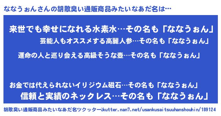 | 意味不明あだ名 | 『ななうぉんフォーエバー』 |