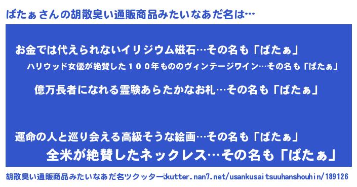 | 恥ずかしいあだ名 | 『プリティーばたぁ』『バタリンリン』 |