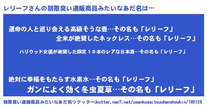 | 意味不明あだ名 | 『住所不定無職レリーフ(68歳)』 |