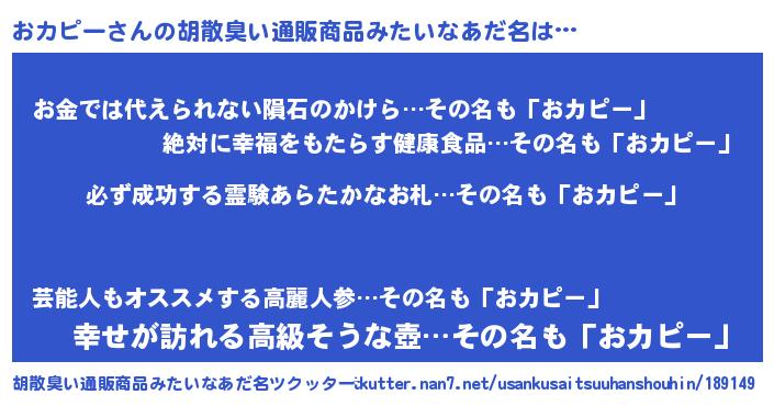 | 男性向けラノベタイトル風あだ名 | 『おカピーの憂鬱』『緋弾のオカピー』 |