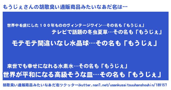 | 意味不明あだ名 | 『ペロリンもうじぇ』『自称もうじぇ』 |