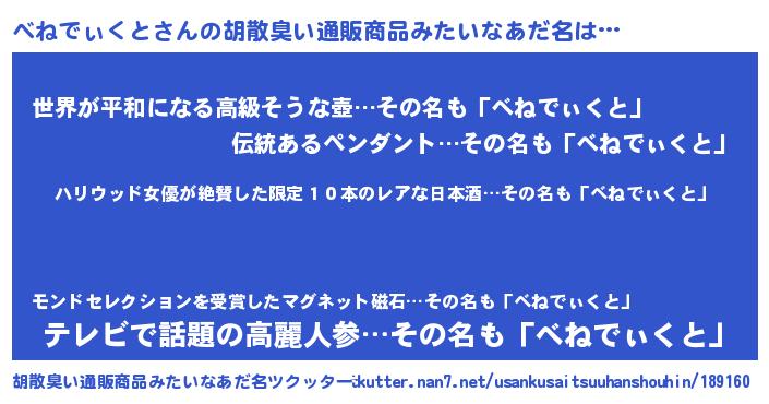 | 欧米人風あだ名 | 『ダレノガレべねでぃくと』 |