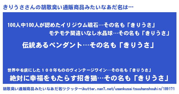 | 意味不明あだ名 | 『とにかく怪しいきりうさ』 |