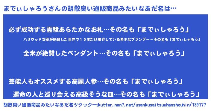 | 意味不明あだ名 | 『とにかく怪しいまでぃしゃろう』 |
