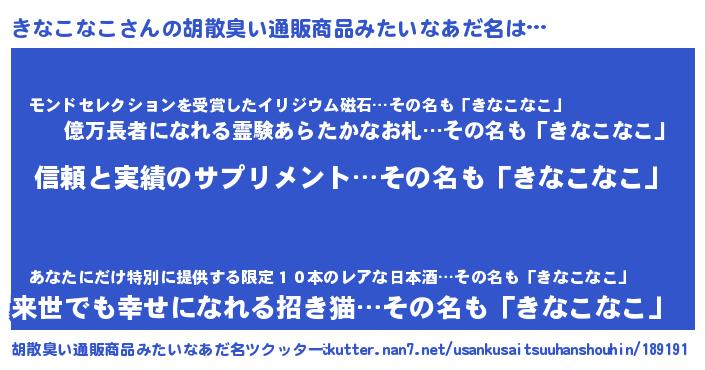 | ヘコむあだ名 | 『きなを』『きなこなこ(爆)』 |