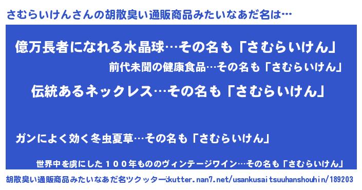 | 伝説のあだ名 | 『解き放たれた僧侶さむらいけん』 |
