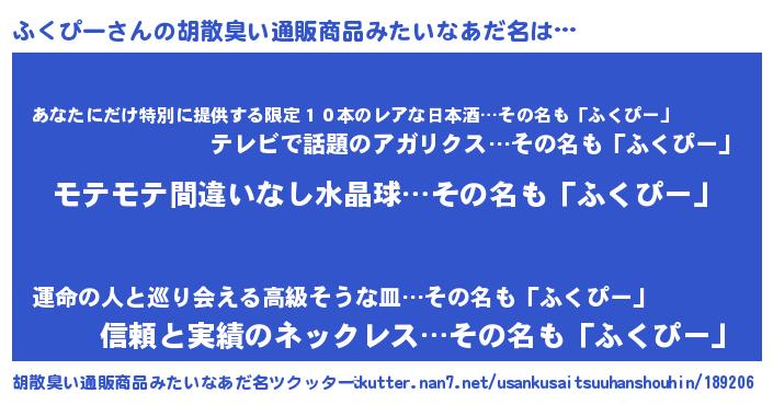| ヘコむあだ名 | 『ふくふぇ~』『ふくぷりん』 |