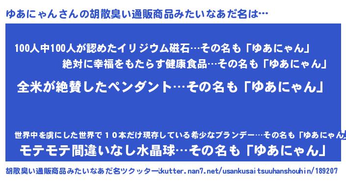 | 意味不明あだ名 | 『とにかく怪しいゆあにゃん』 |