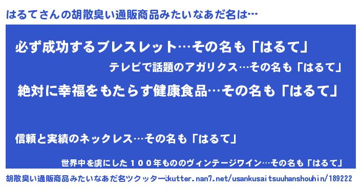 | 男性向けラノベタイトル風あだ名 | 『はたらくはるてさま!』『緋弾のハルテ』 |