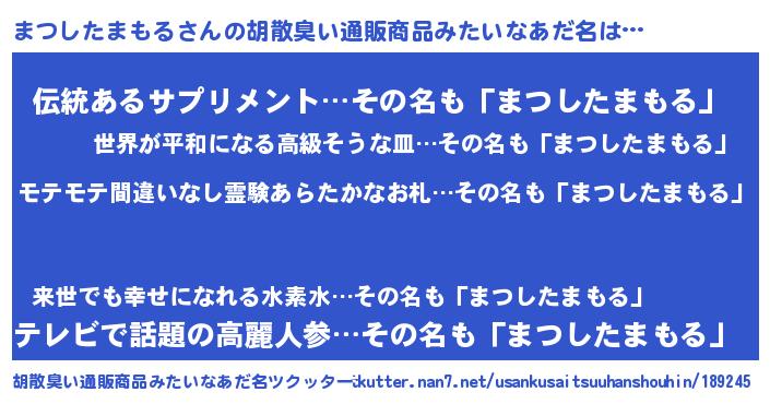 | 恥ずかしいあだ名 | 『プリティーまつしたまもる』『まつちん』 |