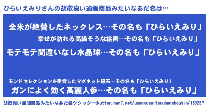| 意味不明あだ名 | 『ペロリンひらいえみり』 |