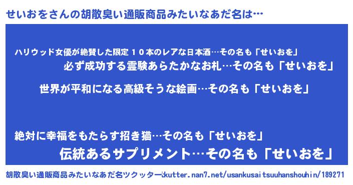 | 欧米人風あだ名 | 『せいおをクリステル』 |
