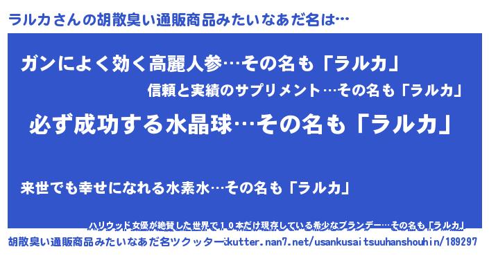 | ヘコむあだ名 | 『ラルにゅー』『ラルお』『つくし』 |