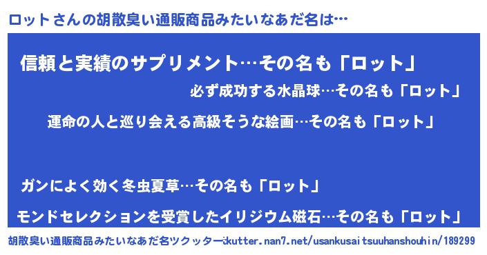 | 男性向けラノベタイトル風あだ名 | 『うちのロットが世界を掌握している!』 |